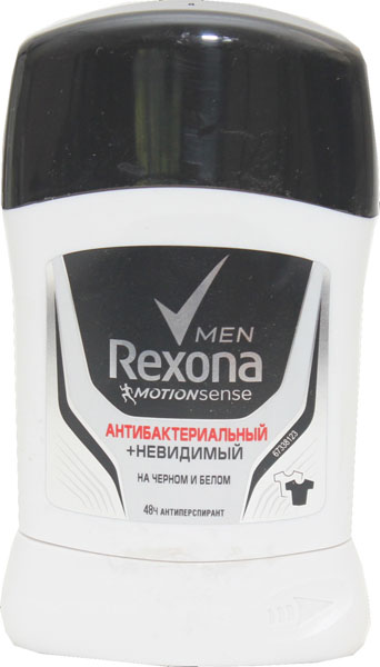 Дезодорант стик антиперспирант "REXONA MEN" антибактериальный + невидимый на черном и белом 50 мл.(6)