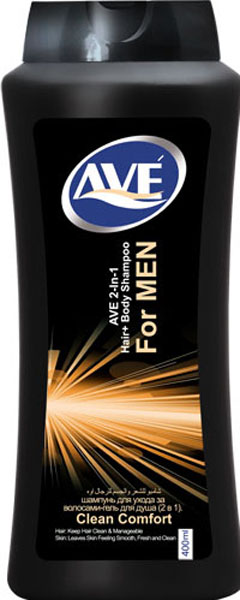 Шампунь "AVE" 2 в 1 гель для душа мужской чистый комфорт 400 мл.(12)