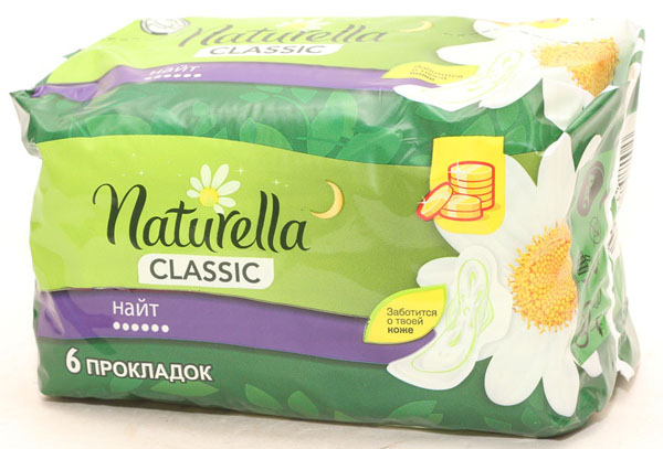 Прокладки "NATURELLA" с крылышками ночные 6 шт.(18)