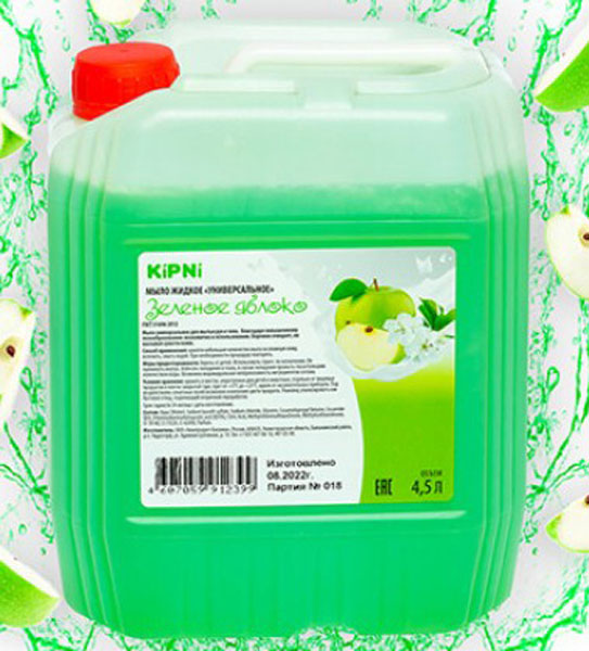 Мыло жидкое "KIPNI" зеленое яблоко ПЭТ 4,5 л.(3)