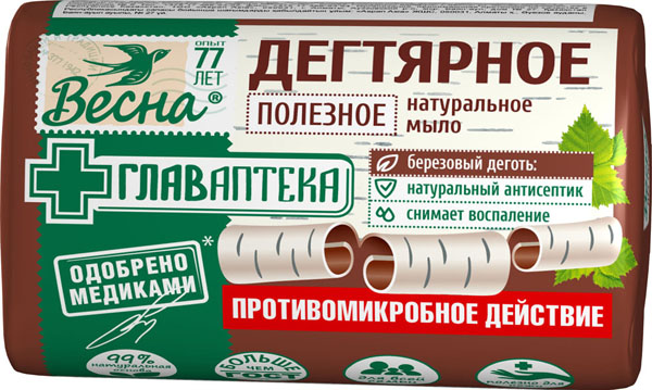Мыло туалетное "ВЕСНА ГЛАВАПТЕКА" дегтярное 90 гр.(72)