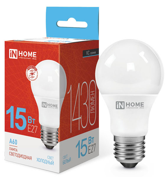 Лампа светодиодная "IN HOME" LED-A60-VC 15Вт E27 6500К 1430Лм 1 шт.(10)
