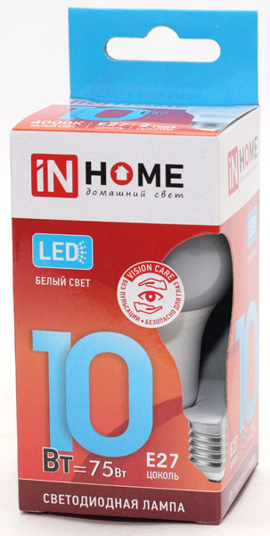 Лампа светодиодная "IN HOME" LED-A60-VC 10Вт 230В E27 4000К 950Лм 1 шт.(1)