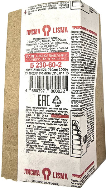 Электролампа "60 Вт" Е-27 1 шт.(100)