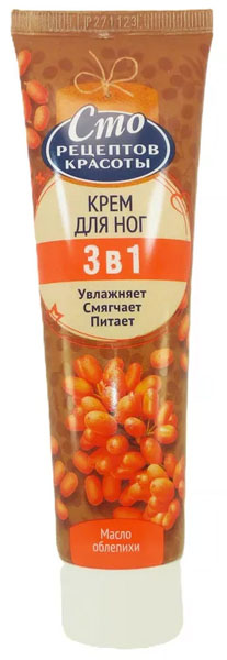 Крем для ног "СТО РЕЦЕПТОВ КРАСОТЫ" масло облепихи 100 мл.(20)