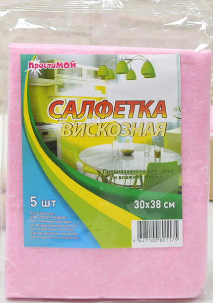 Салфетка "PROSTOMOY МОЙ ДОМОВОЙ" вискозная 30*38 5 шт.(30)