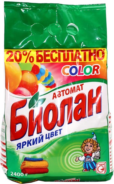 Стиральный порошок "БИОЛАН" автомат колор яркий цвет пакет 2400 гр.(4)