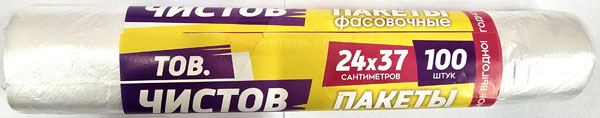 Пакеты "ТОВ.ЧИСТОВ ФАСОВОЧНЫЙ" ПНД рулон 5 мкр 24*37 100 шт.(50)