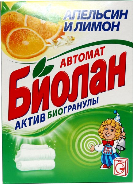 Стиральный порошок "БИОЛАН" автомат апельсин и лимон актив био гранулы 350 гр.(24)