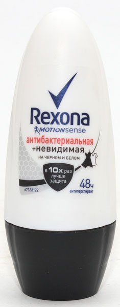 Дезодорант ролик антиперспирант "REXONA" антибактериальная + невидимая на черном и белом 50 мл.(6)
