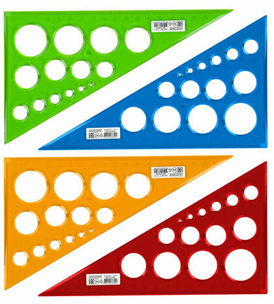 Треугольник "ПИФАГОР" пластик 30*19 см с окружностями прозрачно-тонированный ассорти 1 шт.(20)