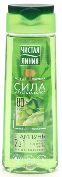 Шампунь "ЧИСТАЯ ЛИНИЯ" фитотерапия 2 в 1 хмель и репейное масло для всех типов волос 250 мл. 540/603(12)
