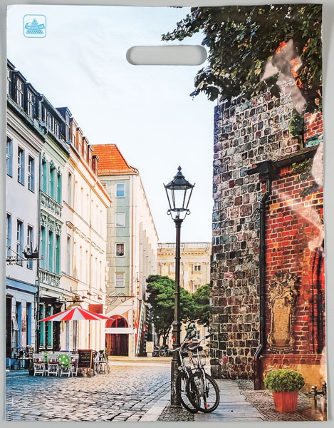 Пакет "ТИКОПЛАСТИК" вырубная ручка ламинированный глянцевый 400*310*0,06 улица 1 шт /в запайке 50 шт/.(50)