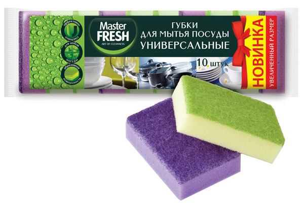 Губка для посуды "MASTER FRESH" универсальная стандарт цвет микс 10 шт.(24)