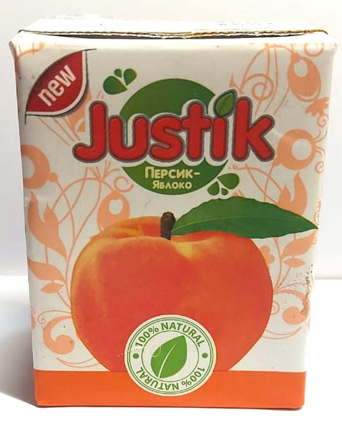 Нектар "JUSTIK" Персиково-Яблочный тетра-пак 0,2 л.(27)