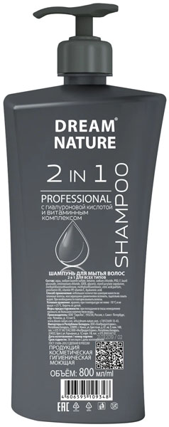 Шампунь "DN" 2 в 1 гиалуроновая кислота/ витаминный комплекс с дозатором 800 мл.(12)