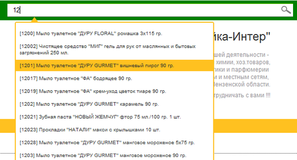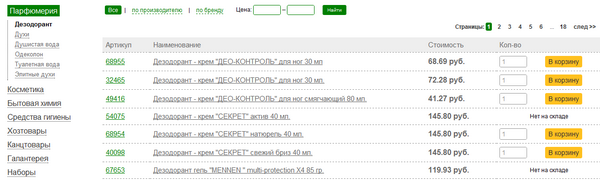 Код или наименование товара вносится через пробел. Результат выдается по нажатию кнопки поиска или «ENTER» |