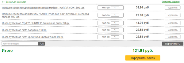 Текущий заказ клиента с возможностью редактирования (изменения количества, удаления позиций)