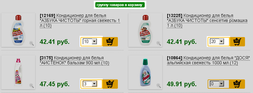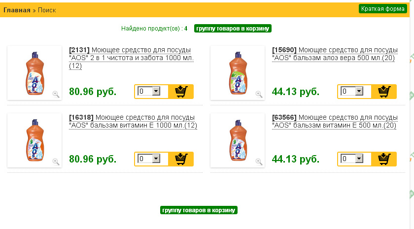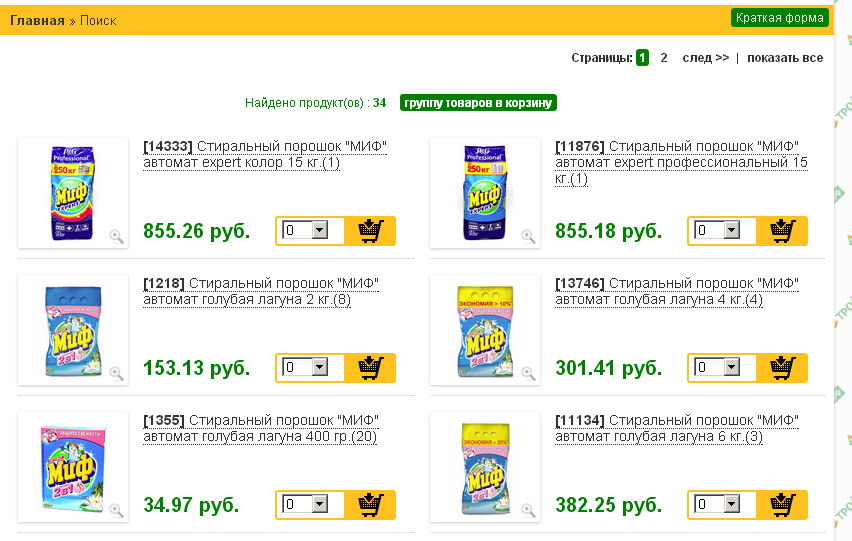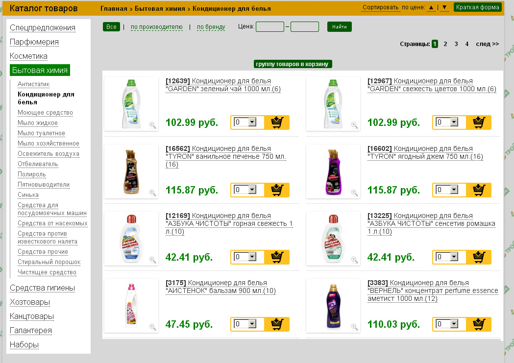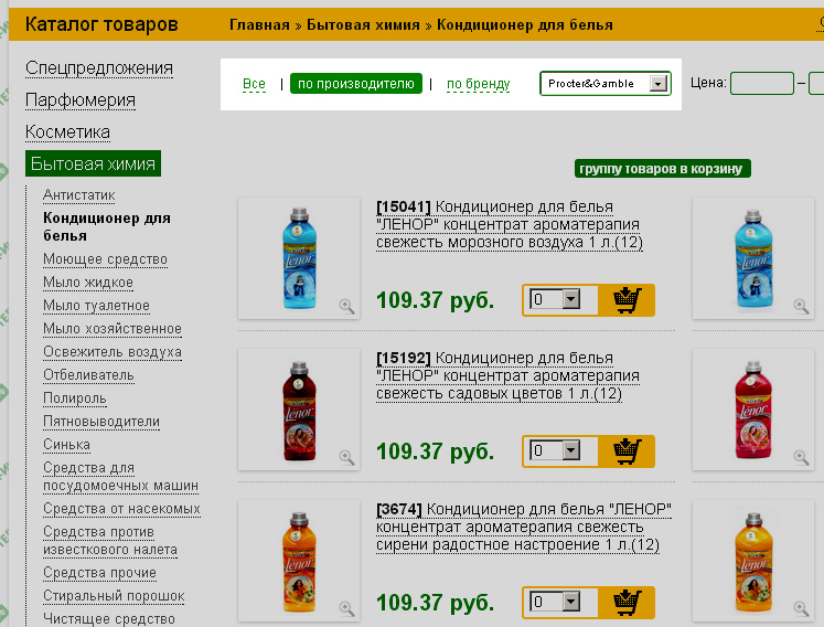 Фильтр сохраняется при перемещении по категориям каталога. Это позволяет быстро и удобно делать заказ по целому производителю/бренду товаров. Для отмены фильтра нажмите кнопку «Все».