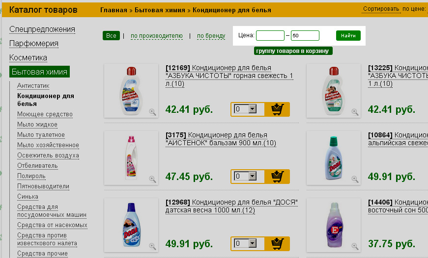 Так же есть фильтр по цене товаров. Введите необходимый интервал цен и нажмите кнопку «Найти»:
