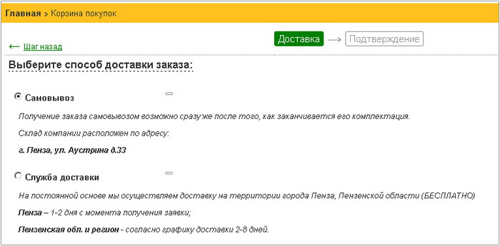 - Выберите способ и, если необходимо, адрес доставки