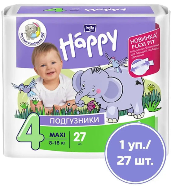 Подгузники "BELLA BABY HAPPY" макси 8-18 кг 27 шт.(6)