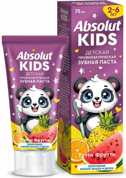 Зубная паста "ABSOLUT" kids тутти фрутти 75 гр.(24)