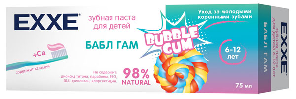 Зубная паста "EXXE" детская бабл гам с кальцием от 6-12 лет 75 мл.(12)