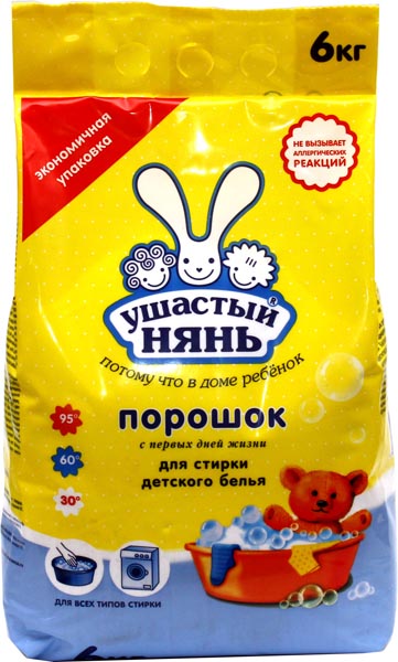 Стиральный порошок "УШАСТЫЙ НЯНЬ" детский с первых дней жизни 6 кг.(3)