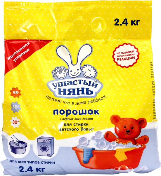 Стиральный порошок "УШАСТЫЙ НЯНЬ" детский с первых дней жизни 2,4 кг.(6)