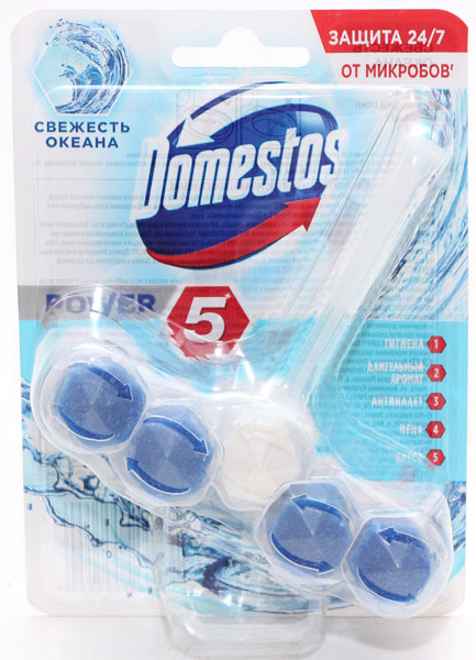 Чистящее средство "ДОМЕСТОС" подвеска для унитаза power 5 свежесть океана 55 гр.(9)