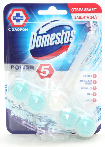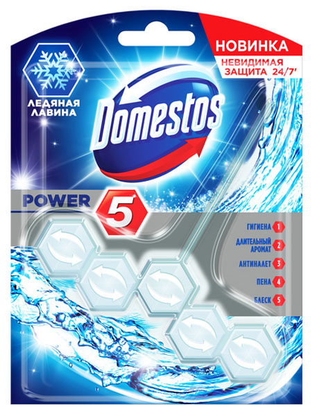 Чистящее средство "ДОМЕСТОС" подвеска для унитаза power 5 свежесть ледяная лавина 55 гр.(9)
