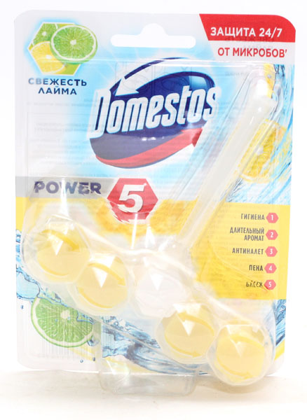 Чистящее средство "ДОМЕСТОС" подвеска для унитаза power 5 свежесть лайма 55 гр.(9)