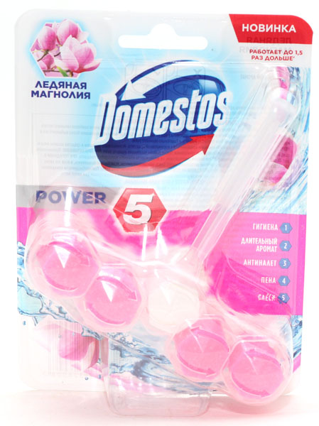 Чистящее средство "ДОМЕСТОС" подвеска для унитаза power 5 свежесть ледяная магнолия 55 гр.(9)