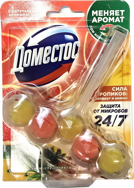 Чистящее средство "ДОМЕСТОС" подвеска для унитаза power 5 свежесть цитруса 55 гр.(9)