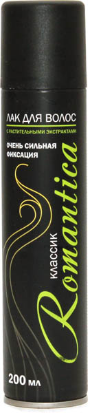 Лак для волос "РОМАНТИКА" очень сильной фиксации (черный) 200 мл.(24)