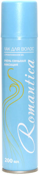 Лак для волос "РОМАНТИКА" с провитамином В5 очень сильной фиксации (голубой) 200 мл.(24)