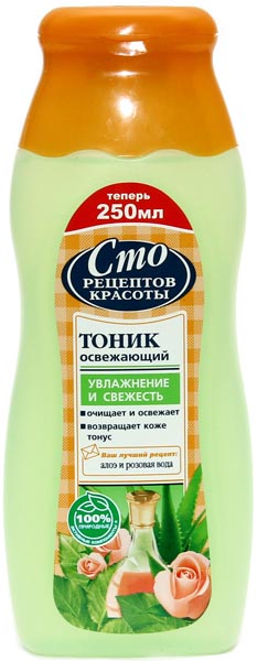 Тоник "СТО РЕЦЕПТОВ КРАСОТЫ" увлажнение и свежесть освежающий 250 мл.(12)