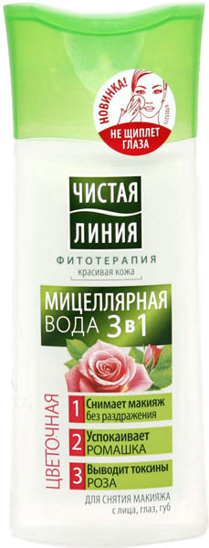 Мицеллярная вода "ЧИСТАЯ ЛИНИЯ" 3 в 1 фитотерапия цветочная для снятия макияжа с лица, глаз, губ 100 мл.(20)