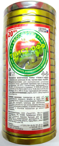 Крышка винтовая "ТВИСТ-ОФФ АССОРТИ" 82 мм 20 шт.(12)