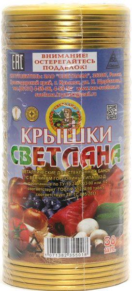 Крышки "СВЕТЛАНА" закаточные металлические 1-82 50 шт.(20)